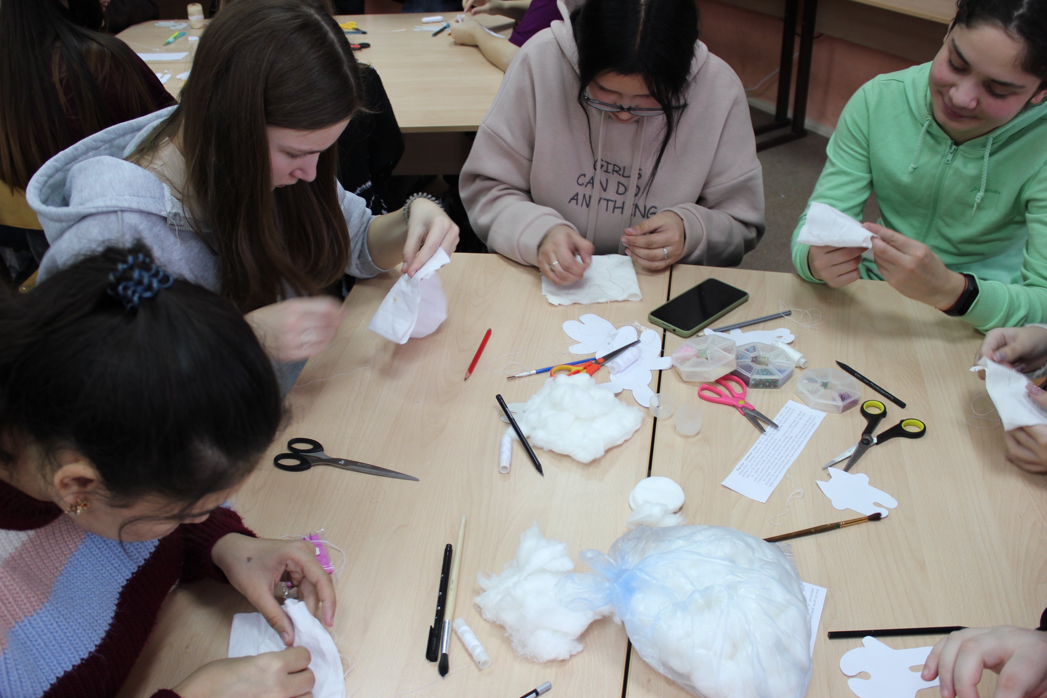 А Елена Анатольевна (дисциплина МДК 02.04 Практикум по художественной обработке материалов и изобразительному искусству) применяя технологию деятельностного обучения, предложила студентам 21 группы выполнить работу с тканями. Но предварительно студенты изучили культурно-исторические истоки тряпичных кукол, актуальность их сегодня, а так же разобрали технологию изготовления чердачной куклы. Наибольший интерес и активность студенты проявили при выполнении задания на изготовления тряпичного зайца. А в завершении урока Турапина Е.А. продемонстрировала выставку работ.