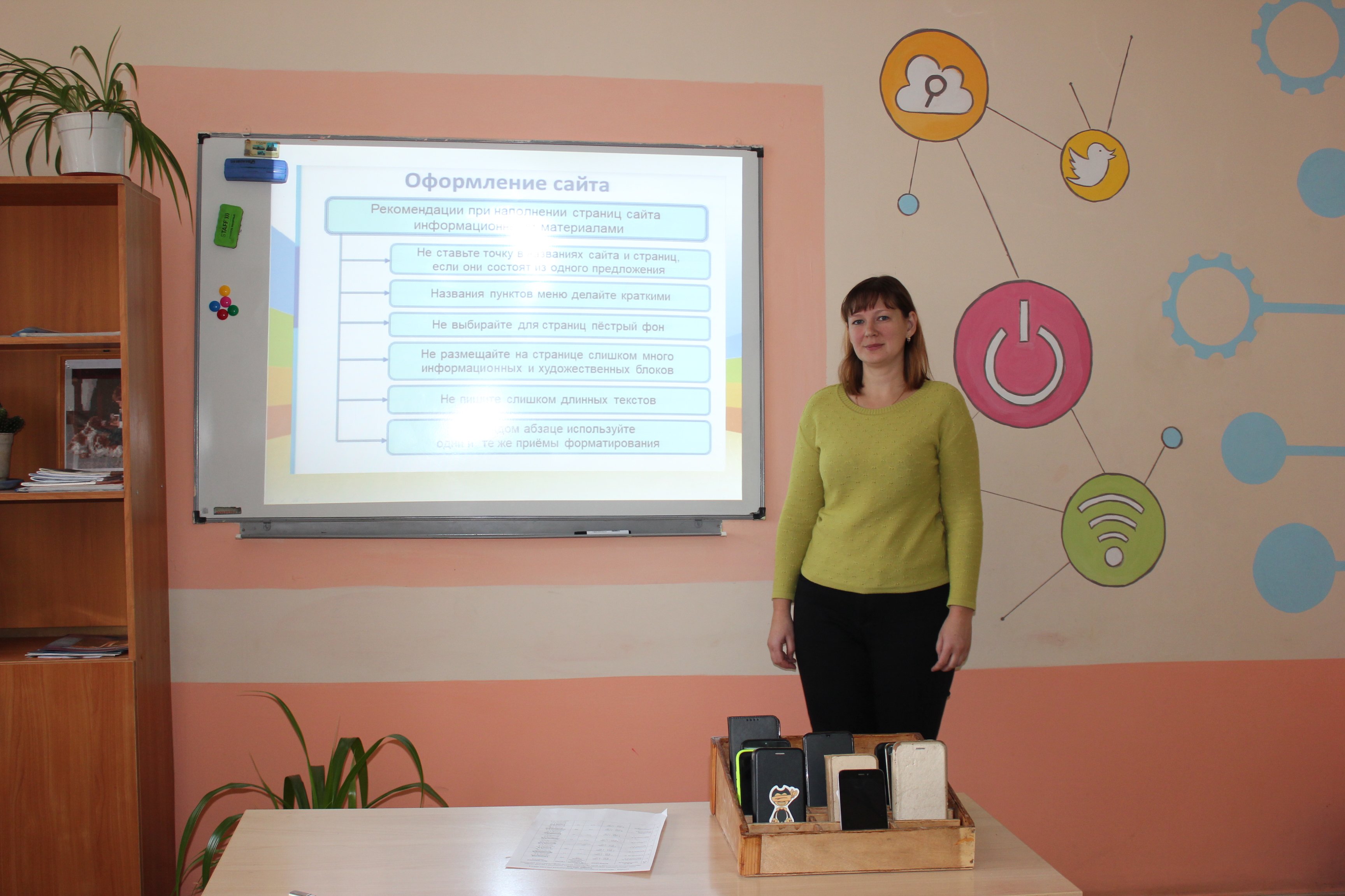 Также бинарный урок по дисциплинам «Информационные технологии» и «Веб-дизайн» показали преподаватели Дикова В.Г. и Суворова Л.Е. Студенты 44 а группы презентовали групповые проекты бедующих сайтов мастерских по ремонту компьютеров. В ходе занятия студенты анализировали основные ошибки на примерах представленных проектов, сформулировали основные требования к сайту, а затем с помощью конструктора сайтов разработали по своим проектам персональные сайта.